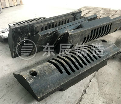 鐮寸鏈鴻‖鏉垮湪ZGMn13Cr2鐨勫熀紜涓婇噰鐢ㄩ珮閾笌楂樺脊鎬у悎閲戦挗娑叉佸鍚堣屾垚 錛屼笢杈伴摳閫犲巶涓撲負姝よ璁′簡鐗規畩鐨勬祰娉ㄥ伐鑹猴紝閬垮厤浜嗚杽鏉挎祰娉ㄤ腑瀹規槗鍑虹幇鐨勬皵瀛旂爞鐪肩瓑緙洪櫡錛屼嬌寰楅摳浠跺帤搴﹀潎鍖銆侀噾鐩哥粨鏋勫悎鐞嗐傚悓鏃惰璁′簡鍚堢悊鐨勭儹澶勭悊宸ヨ壓錛屼笉浣嗕繚璇佸叾楂樼殑鑰愮(鎬ц兘鑰屼笖淇濊瘉鍏跺ソ鐨勯煣鎬у強鎶楀啿鍑繪ц兘銆?/p>